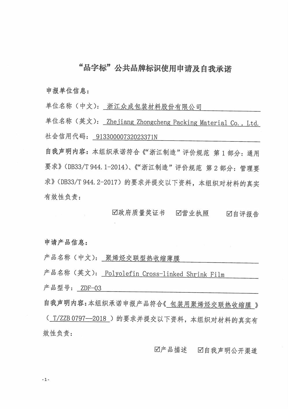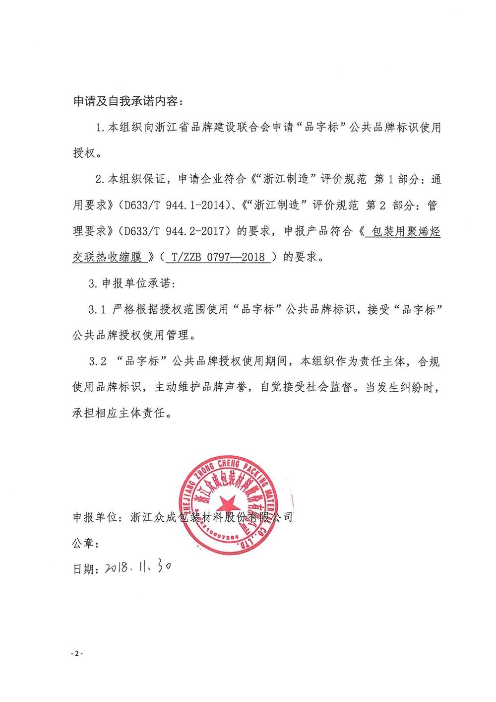 “品字标”公共品牌标识使用申请及自我承诺 2018-11-30 09:54:51 浙江3118云顶集团包装材料股份有限公司 浏览次数 7942 上一条浙江3118云顶集团“学党史,忆初心”主题党日活动 下一条关于投资建设“高性能功能性聚丙烯薄膜试制项目”